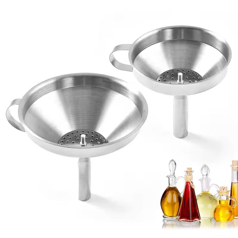 Portable Stainless Steel Funnel With Handle and Removable Strainer Filter